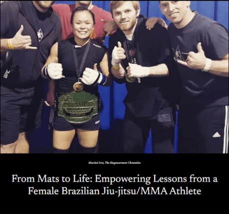 If you still aren’t comfortable or convinced that as a female, you could train in BJJ, then please read my blog titled, ‘From Mats to Life: Empowering Lessons from a Female Brazilian Jiu-jitsu/MMA Athlete‘. To read the blog, please click the article title or the picture below: