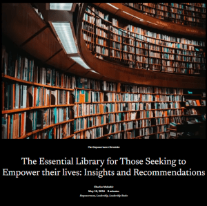 - Books and journals: Studying books and academic journals is one of the best things you can and should do on a daily basis. I use the word “study” versus “reading” because I study books by way of Audiobooks – through Audible specifically which I highly recommend. Depending on my work assignment for the day, I can be on the road for 1 to 1.5 hours per day. I use my drive time as an opportunity for continuous learning through the Audible app. I also encourage subscribing to journals in your area of discipline to keep up to date with the most recent findings of your specific industry. Also consider going a little “old school” and joining your local library. I joined my local library recently and it was one of the best decisions I made to date – As part of my morning routine, I like to prime my mind by reading 5-30 minutes a day depending on what my schedule looks like. If you need some recommendations on good reads that can help empower your life, please check out my Blog Post, ‘The Essential Library for Those Seeking to Empower their Lives: Insights and Recommendations‘ by clicking on the pic below: